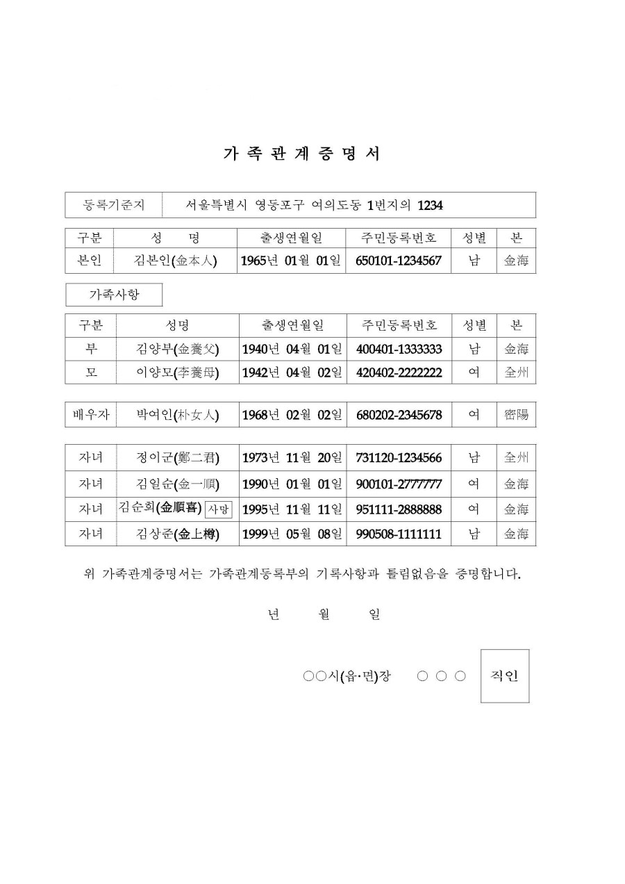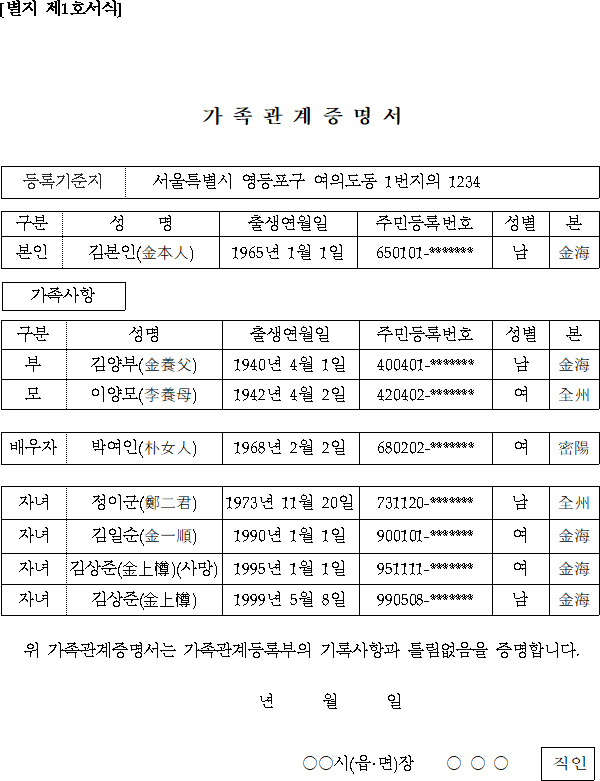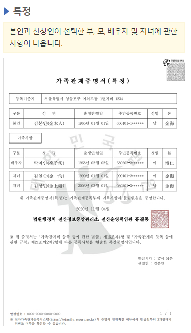 1. 가족관계증명서