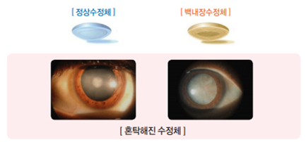 백내장이란? 눈에 들어온 빛은 홍채 뒤에 있는 투명한 조직인 수정체를 통과하면서 굴절되주어서 망막에 상을 맺게 돼요. 백내장은 이 수정체가 혼탁해져서 빛을 정상적으로 통과시키지 못하여서 눈앞에 안개가 낀 것과 같이 뿌옇게 보이는 안구 질병이라고 하죠.