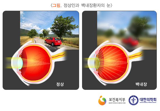 백내장 경우는 거리에 무관하게 모든 피사체가 흐리게 보이는 경우가 많아 간략하게 구분할 수 있다고 합니다.